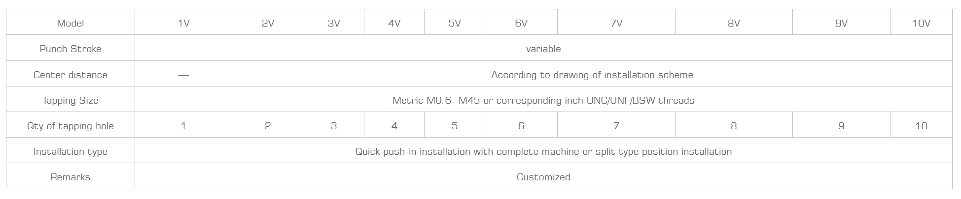 DZX-1V-TDZX-2V-T-WT: means punch strokeW: means ceter distance